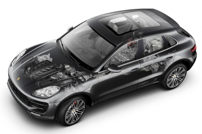 Кросовер Porsche Macan побудовано на основі несучого кузова з поздовжнім розташуванням двигунів та незалежними підвісками: двохважільною попереду та багатоважільною позаду. До речі, підвіска може бути звичайна пружинна або пневматична: можливість регулювання кліренсу в межах 18-23 см; стандартний кліренс близько 19 см; функція «присідання» задньої частини кузова (-40 мм) для спрощення завантаження багажника. Бензинові турбодвигуни теж можуть змінюватись - під капотом встановлюється або 2,0-літровий 4-циліндровий мотор, або 2,9-літровий V6. Нарешті, змінюються навіть гальма: різний розмір дисків та різні супорти, зустрічаються гальма PSCB (гальмівні диски з керамічним покриттям), опційно пропонуються гальма PCCB (керамічні композитні диски).